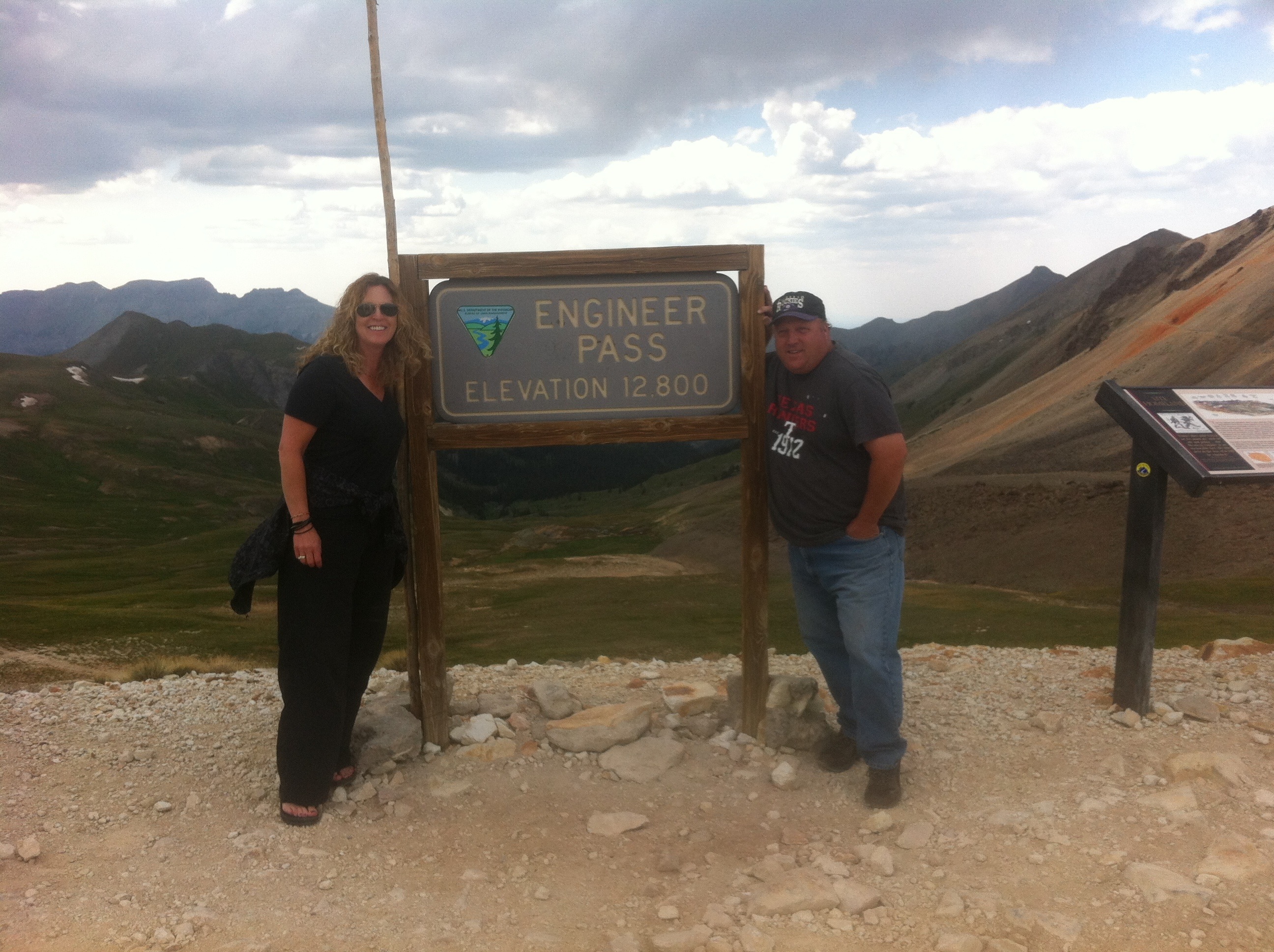 So I pulled up my big girl panties and left Silverton to finish the other half of the Alpine Loop. Only this time, I decided to change my attitude. Rather than question whether or not I could do it, I cranked the music and enjoyed every minute of it. It was amazing. Awesome is an understatement! It really felt like I was driving to the top of the world. Thank you Dave Roberts! Again, the pictures don’t do it justice. At the top of Engineer pass, the picture is me and some guy named Sam. We all thought it would be more fun to be in each other’s pictures.