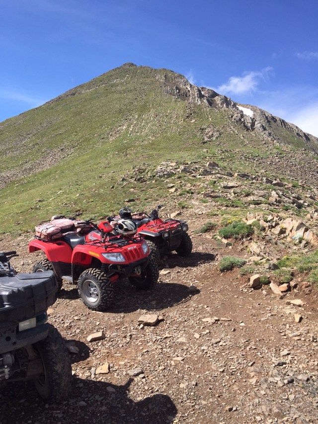 Brian had to head home Sunday morning with Jack’s truck, and the kids and I had a date at 7:30 am to go ATVing. I expected that we would just ride trails around the campground. Wrong! We drove about 30 minutes to a trailhead deep in the Spanish Peaks with Freddy (he runs the Middle Fork Resort when Bill is gone). Our neighbors two RV’s down from us also joined us with their ATV’s. Unbelievable! I’ll just show you in pictures.