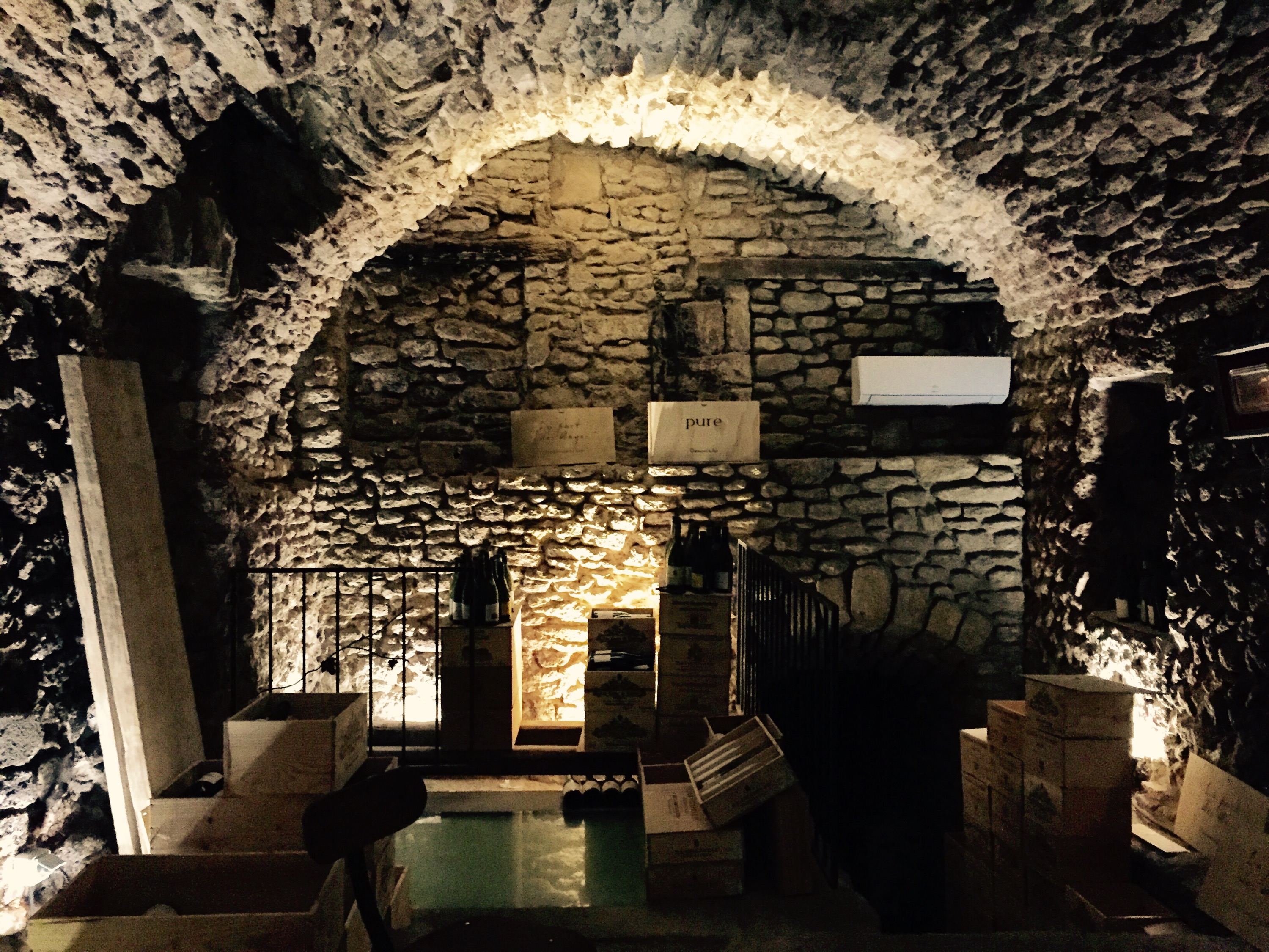 At the suggestion of our host, we went to a town called Sorgues. Cute village, but we couldn’t stay long. We had an appointment to taste more wine. In caves. These caves are said to be the pope’s personal caves in the 13th century. There is a tunnel from the cave to the pope’s chateau.