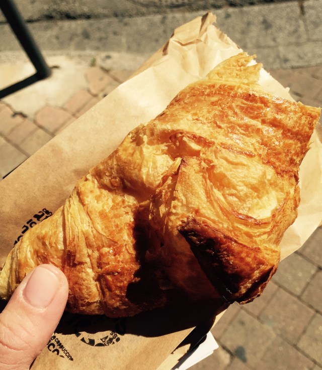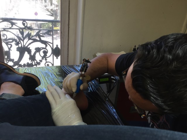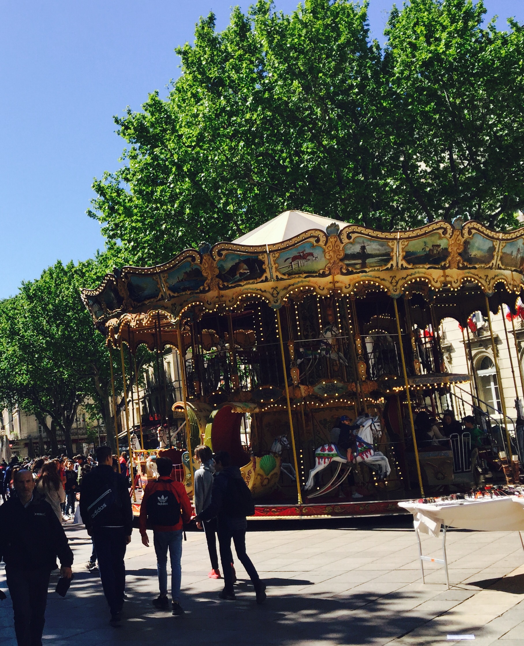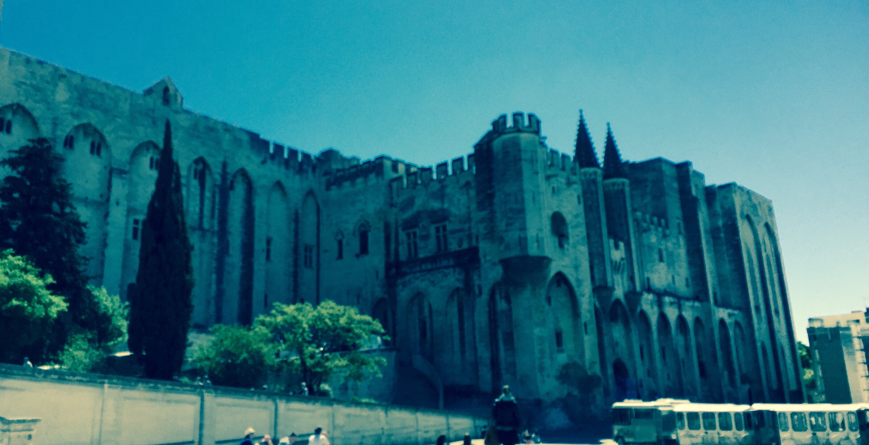 We went into the walls of Avignon. The city center is inside walls built by the Romans in the 13th or 14th century. There is also much of the city outside of the walls but most of the fun is inside. The palais de papes(palace of the pope), cafe’s, restaurants, shopping etc. is inside. The best people watching ever. I first found a croissant, then coffee. Yum. Yum. Heaven. Oh, and I now love rose’ wine and I accidentally got a tattoo. And then I got a baguette!