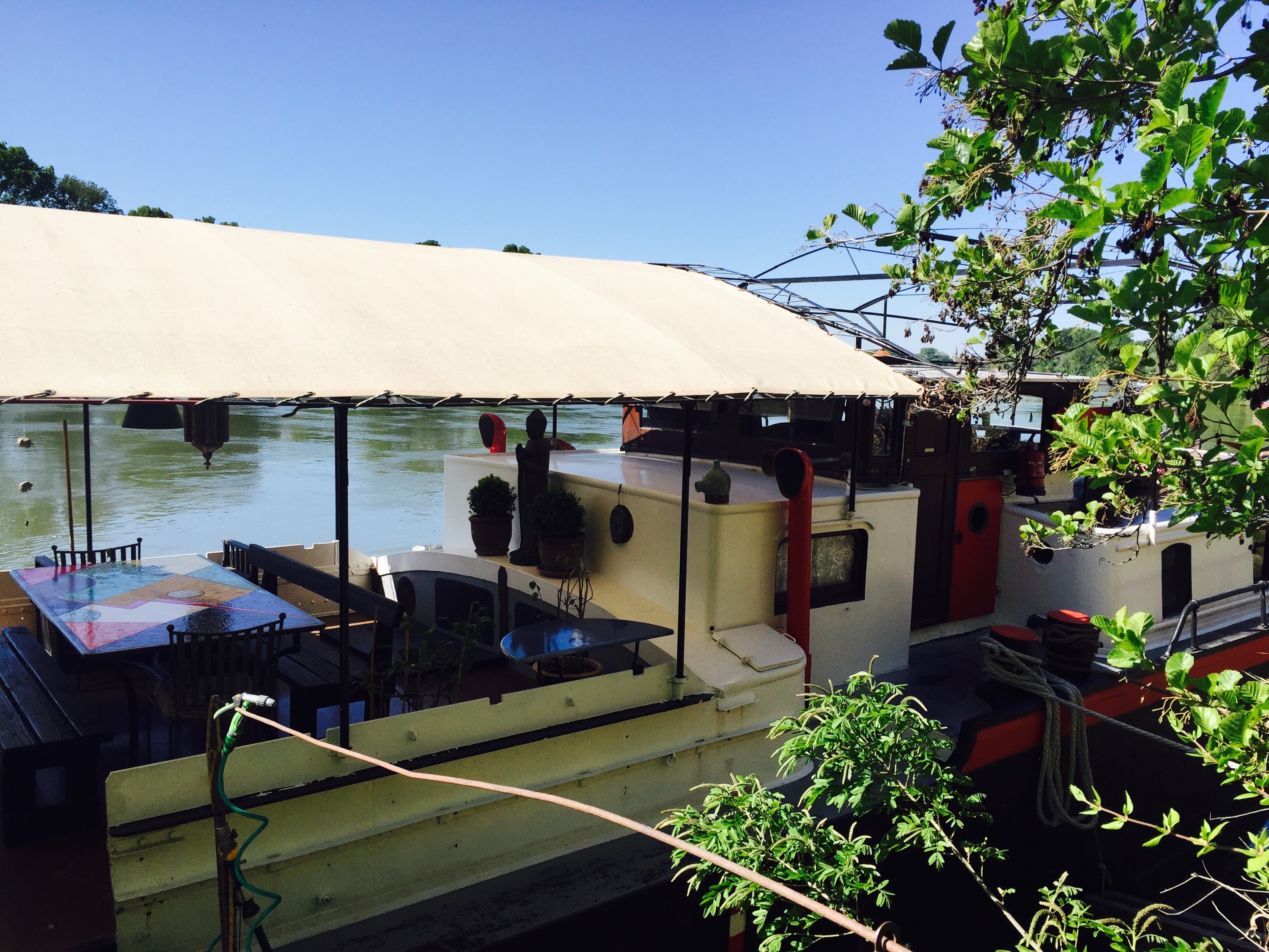 Lots to tell you today. We woke up on the houseboat. Wow. Sunny. Beautiful. There is not a real shower in the houseboat, but a lovely bathtub. How could I not???