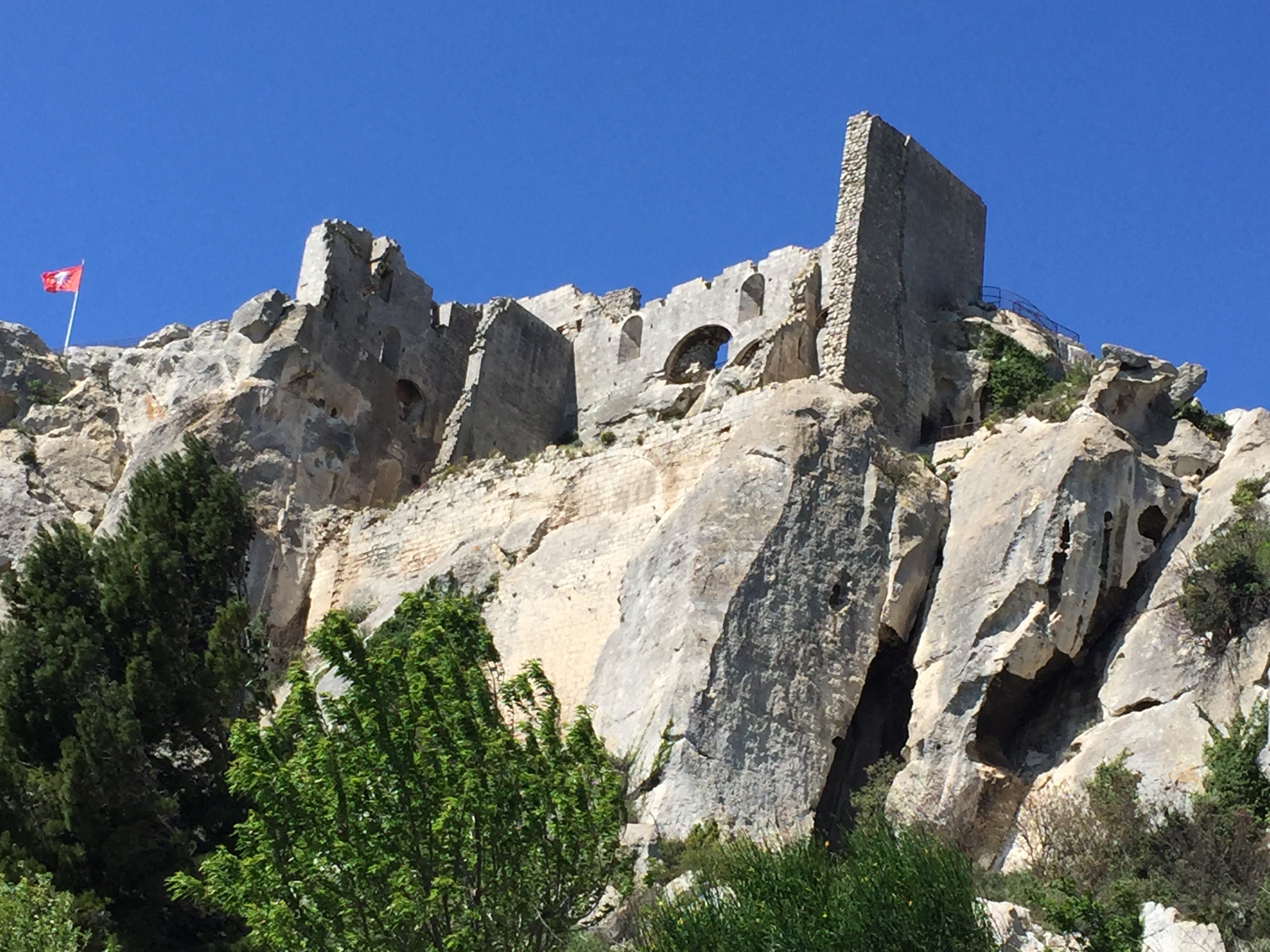 Another chilly day in Chateauneuf-Du-Pape. We had another fine breakfast with our host Brigitte. She is wonderful and amazing. She comes from a wine family in the village. We learned so much more about the wine here and the history behind it. No wonder it is some of the best wine in the world. But off we go to new adventures. We head to a 2000 year old village called Les Baux de Provence. What we saw was totally unexpected. Rocky, mountainous, and very high. Stunning actually.