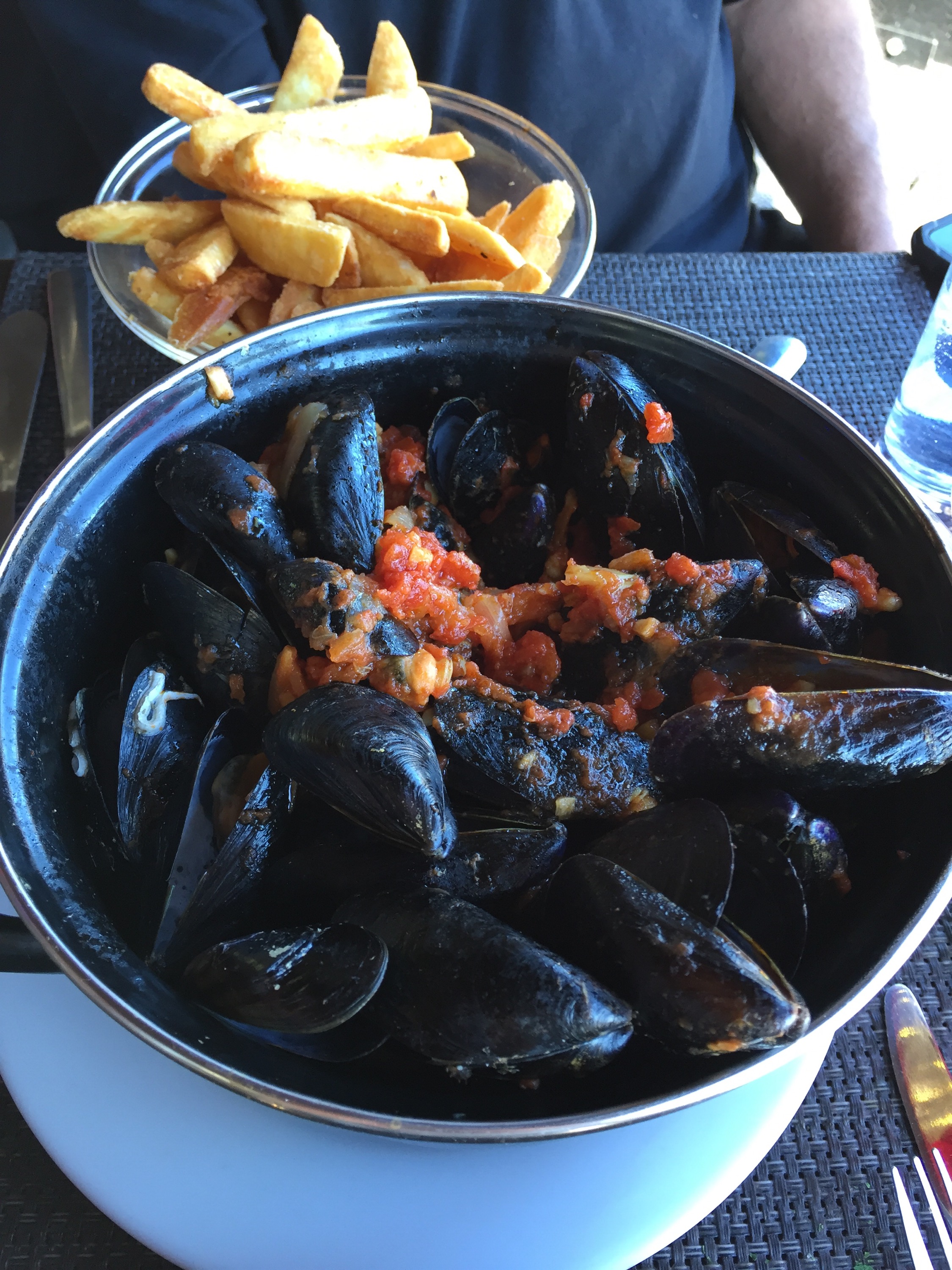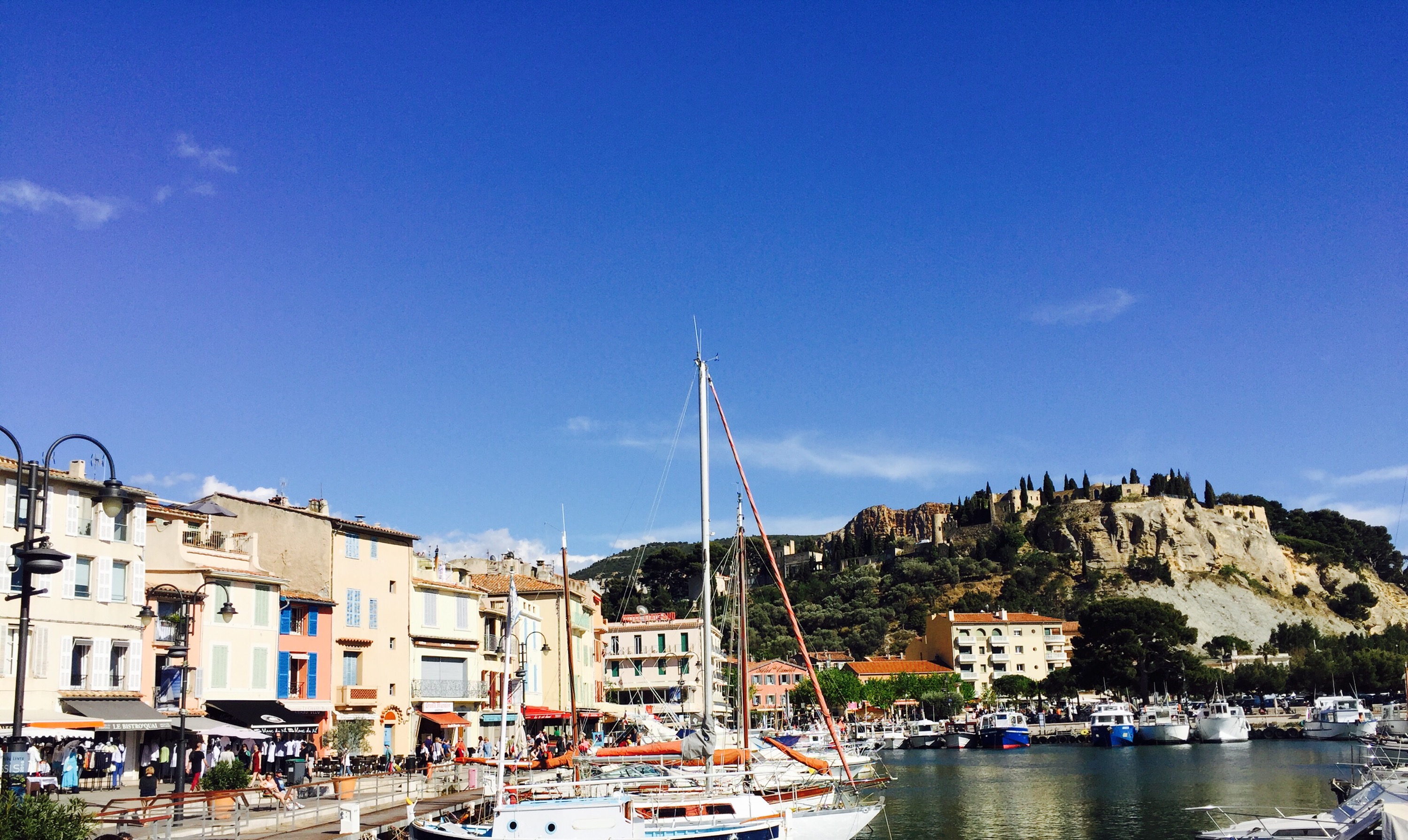 We drive through many other charming villages in our way to Aix-en-Provence. I had heard and read about this for years and was excited to get there. Truly, our first disappointment. It is a very large city with many universities. Big, bustling and honestly ugly. We didn’t stay long. We picked a coastal town called Cassis to head to next. Let me tell you how exciting it was to turn a corner and see the Mediterranean!! Big, blue and beautiful. The weather warmed up substantially. We sat at a restaurant on the water and ate Mussels and drank Rose’.