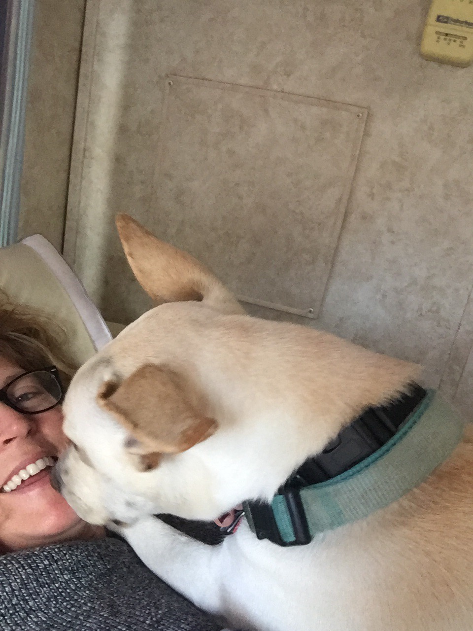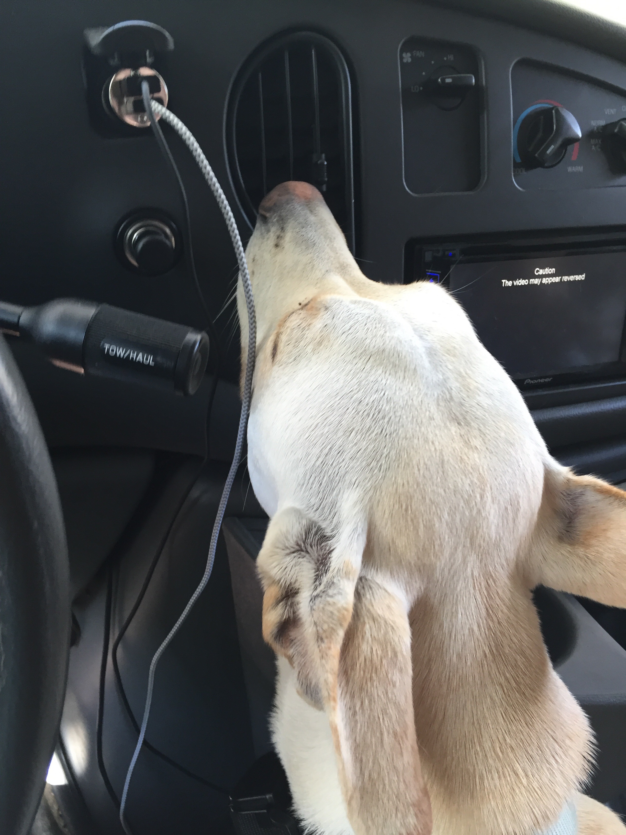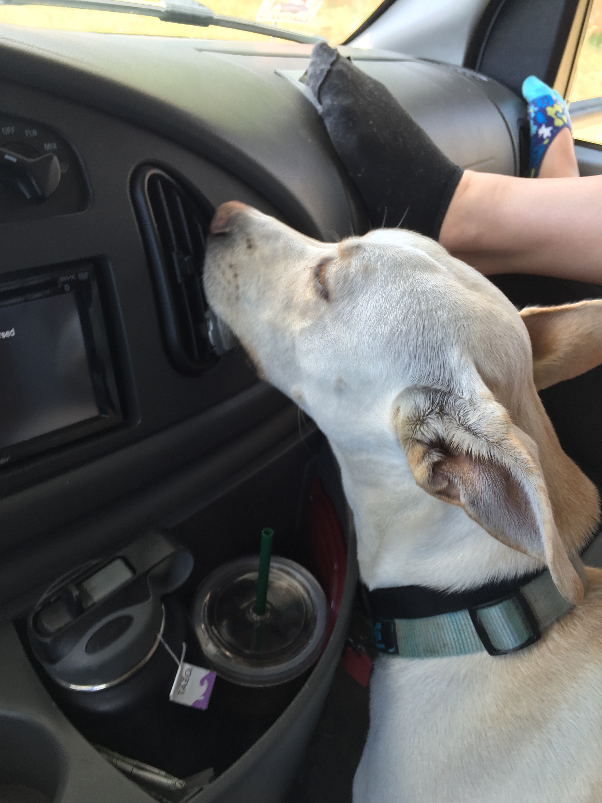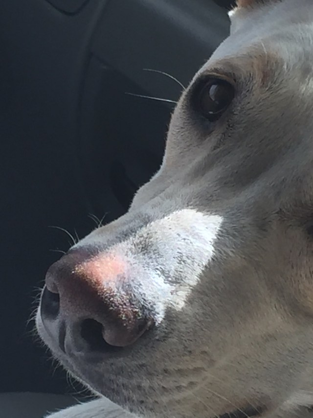 I should also say that she had a sniffing problem. When the air conditioning is on while I’m driving, she insists on sniffing the air that comes out of the vent. We are looking into rehab.