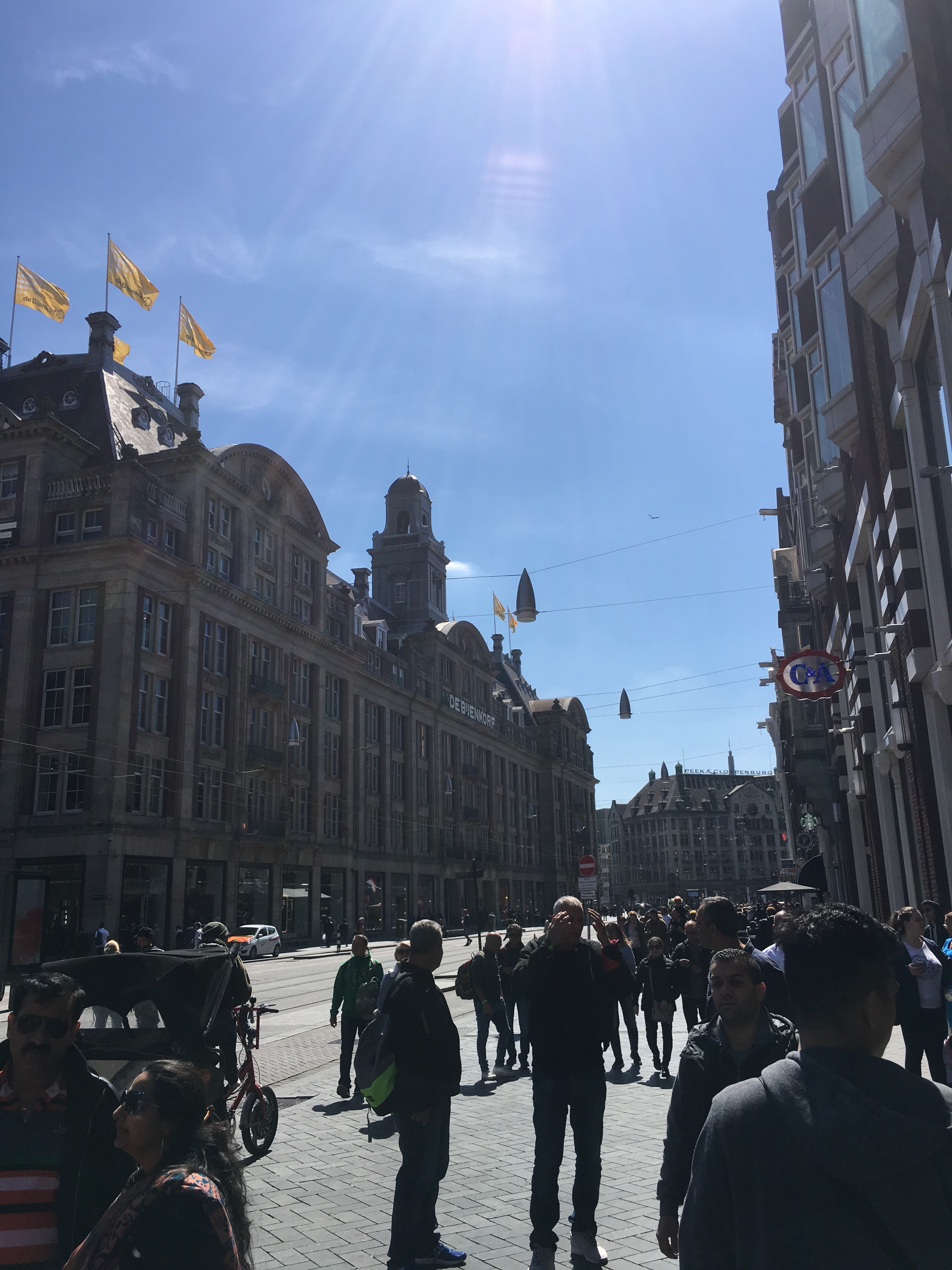 Then we walked to Dam Square and wandered around amongst a zillion people. We made it to the Anne Frank house, and just snapped a photo outside. Probably shouldn’t have been smiling here, because it is a somber place for sure.